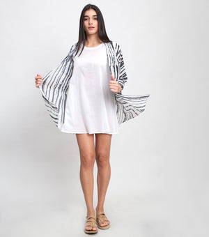Elevate your beach style with our Black & White Cotton Printed Coverup. Made from high-quality cotton, it features intricate neck detailing and a stylish print. Perfect for poolside lounging or shoreline strolls, this versatile piece is a summer wardrobe essential. Its lightweight fabric ensures comfort, while the loose fit flatters all body types. Whether you're jetting off to a tropical destination or soaking up the sun at home, this coverup adds chic elegance to your ensemble.
