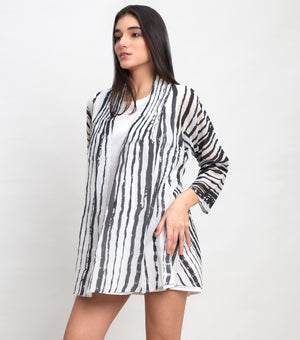 Black White Cotton Printed Coverup With Neck Detailing