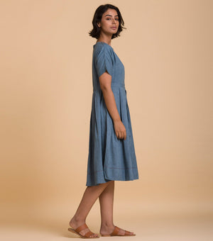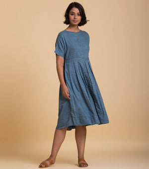 Blue solid cotton dress