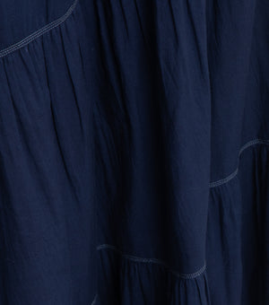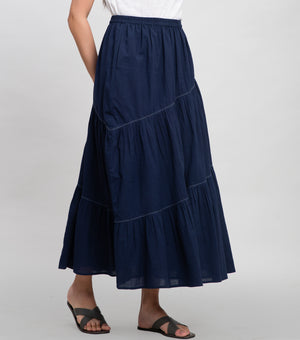 Navy Cotton Skirt with Thread Stitch Line Detail