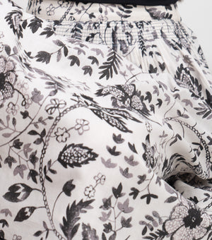 Off White Cotton Printed Skirt With Pleats On The Waistline