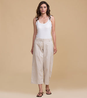 • Front And Back Pleated Cotton Pant With Front & Back Pocket
