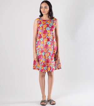 - Cotton Silk dress with printed cotton inner dress