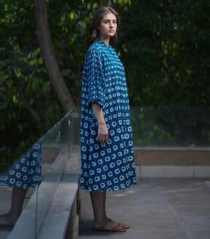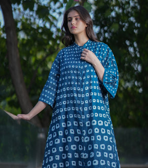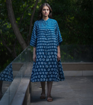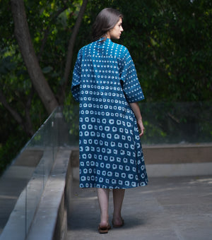 Blue Cotton Printed A-line Shirt Dress