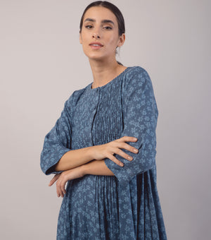 Navy Blue Printed Cotton Dress