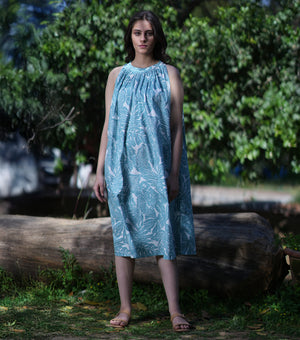 A refreshing blue print brings lightness to this cotton dress, designed for everyday wear. The relaxed fit keeps it comfortable through long summer days, while the breathable cotton fabric makes it easy and effortless. Styled simply, it works well for casual outings or slow weekends.