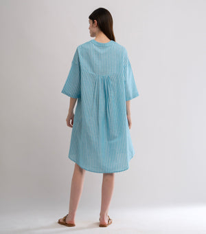 Refresh your everyday style with our Blue Striped Cotton Dress. Crafted from soft, breathable cotton, this luxe dress features a playful stripe pattern and a flattering silhouette that’s perfect for any occasion. The crisp blue hue adds a touch of sophistication, while the easy, breezy design keeps it fun and versatile. Whether you're heading to brunch or a casual day out, this dress effortlessly blends comfort with chic elegance!