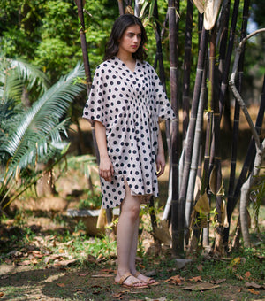 Ivory Black Polka Dot Printed Cotton Kaftan