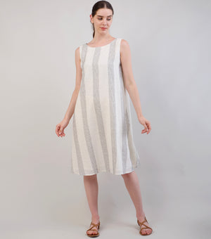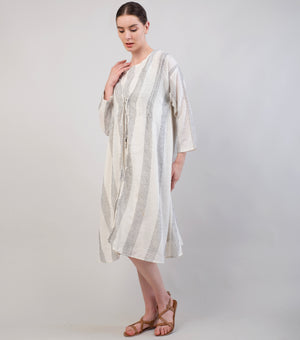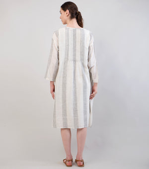 Ivory & Black Striped Woven Cotton Overlay and Dress