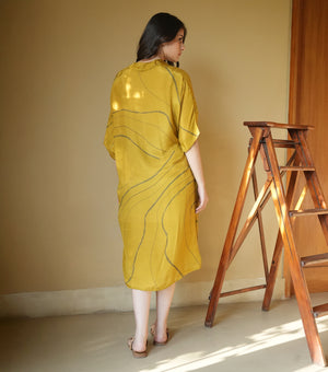 Mustard Soft Cotton Silk Printed Kaftan Dress