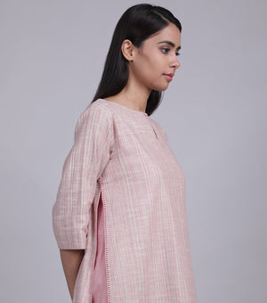 PINK HANDWOVEN LINEN KURTA