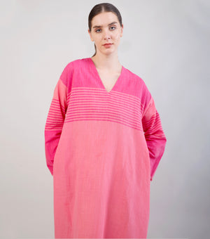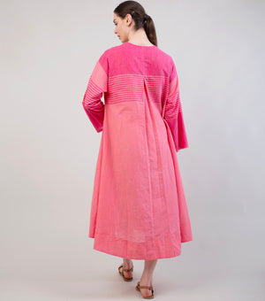 - Featuring a pink colour blocked self-striped woven cotton A-line flared dress enhanced with raw-edged finishing detail on the sleeves.