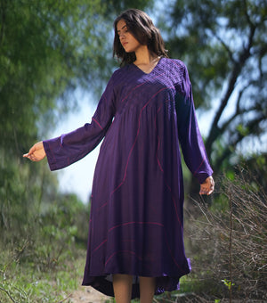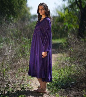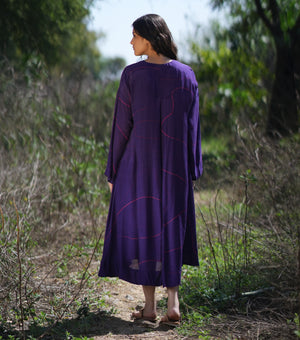 Purple Printed Cotton Silk Dress