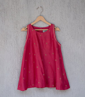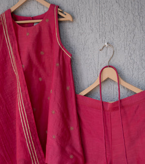 Dark Pink Flared Chanderi Kurta & Sharara Set
