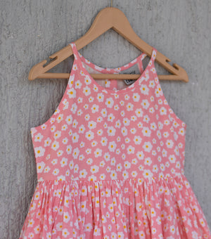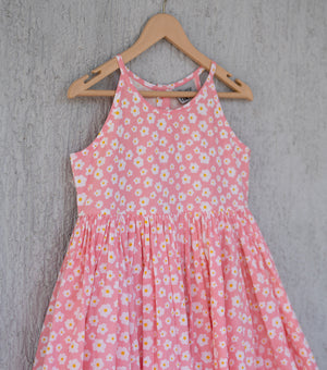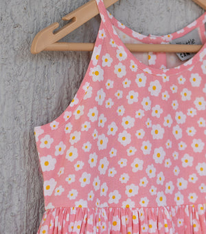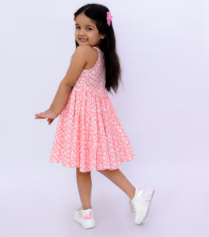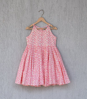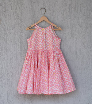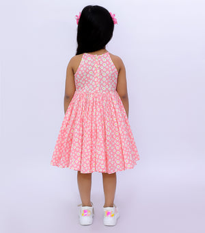 Introducing our Pink Floral Yoke Cut Dress, a delightful summer essential for girls! Crafted from breathable cotton fabric, this dress features a charming floral print design and gathers near the waist for a flattering fit. With back fabric buttons for easy wear, it's perfect for sunny daytime adventures. Get yours now and keep your little one cool and stylish all season long!