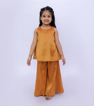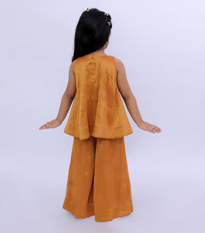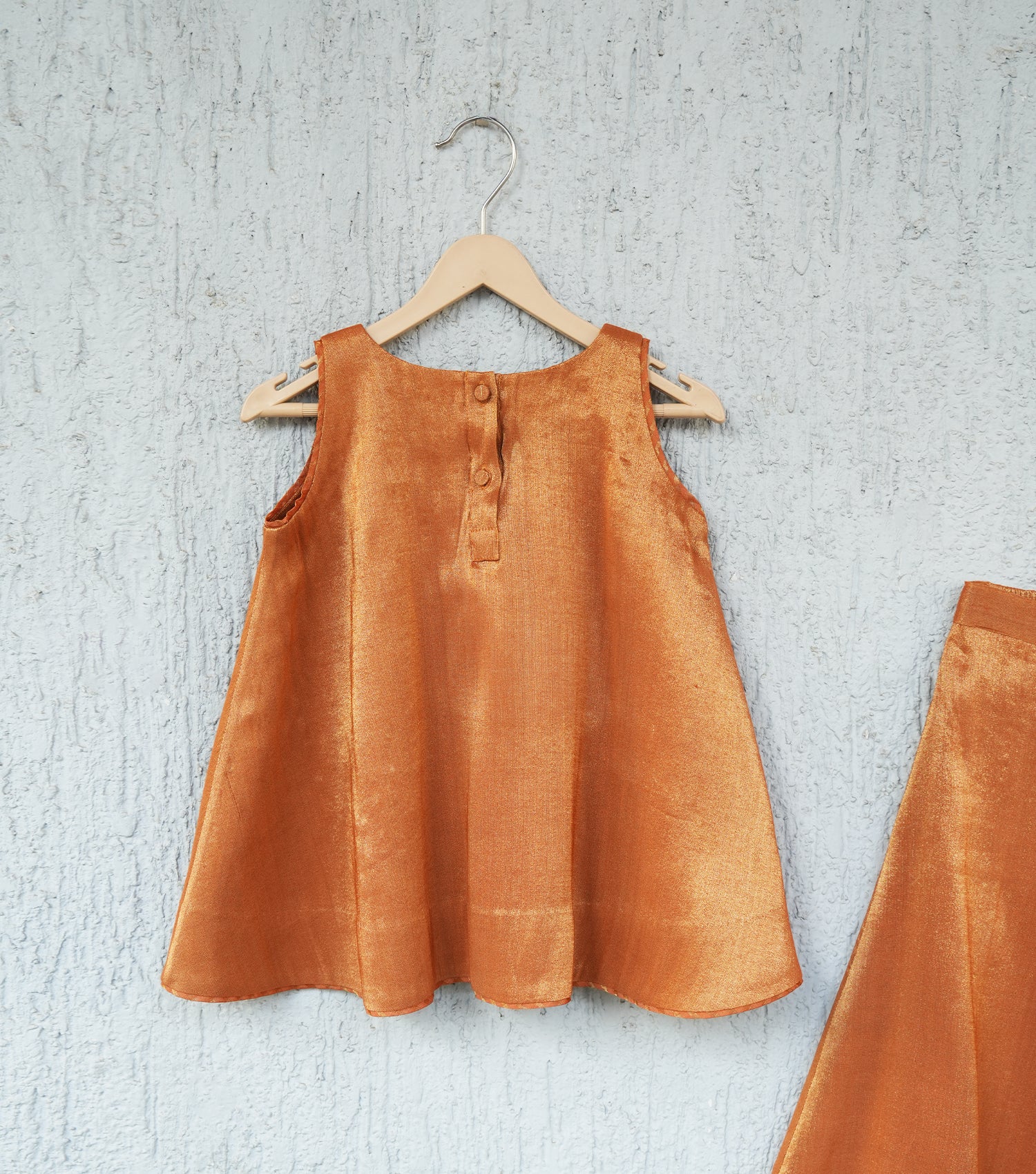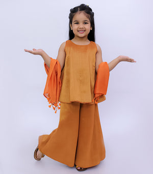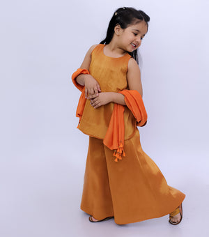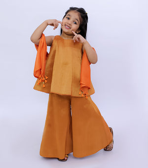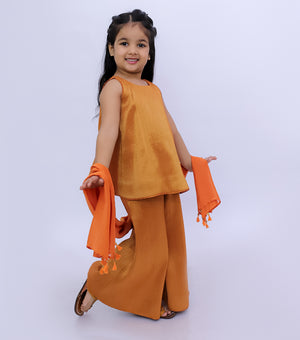 Orange Tissue Sharara Set with Kurti & Dupatta for Girls