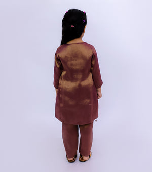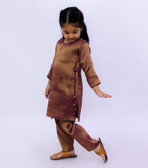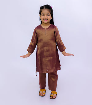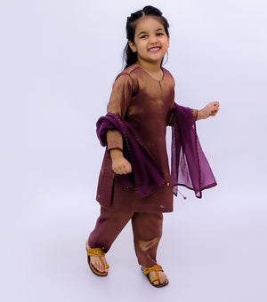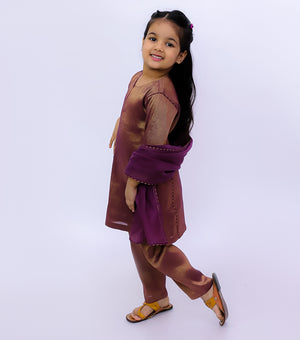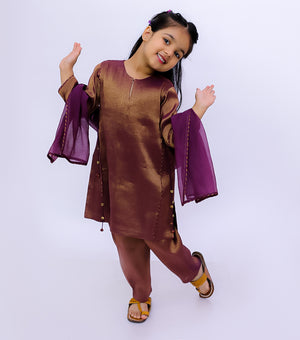 Let your little one dazzle in our Purple Tissue A-Line Tassel Kurta Set, a perfect blend of elegance and playful charm. Crafted from shimmering tissue fabric in a regal purple hue, the A-line kurta features chic tassel accents, paired with matching pants and a flowy dupatta for a complete festive look. Lightweight, breathable, and designed for comfort, this outfit is perfect for weddings, festivals, and special occasions, ensuring your little fashionista shines effortlessly. Add this stylish, vibrant ensemble to her wardrobe for celebrations that sparkle with joy!