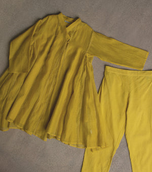 Sun Yellow Chanderi Choga & Cotton Pants Set