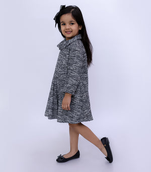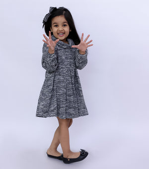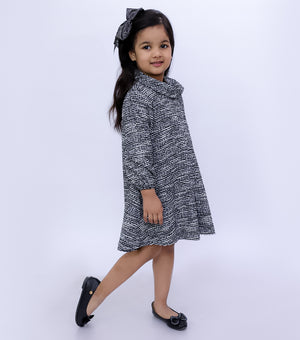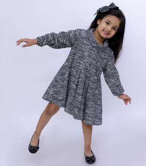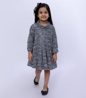 Textured Wool Cowl Neck Pleated Winter Dress