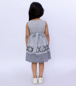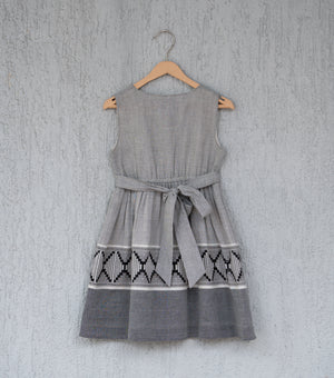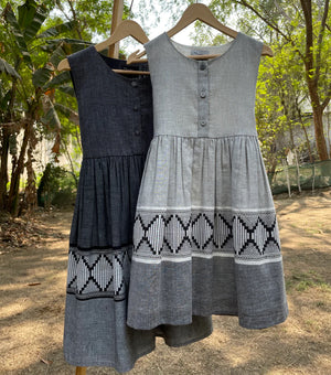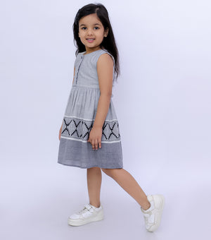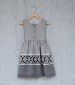 Upgrade your little one's summer wardrobe with our Woven Design Gathered Dress. Crafted from breathable cotton fabric in grey and black, it's perfect for sunny days. The button-down design and gathers near the waist add flair, making it ideal for both casual and special occasions. Treat your girl to comfort and style now!