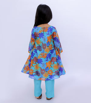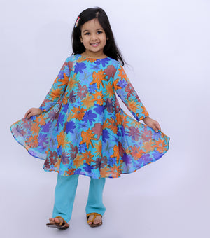 Blossom Bliss Floral Fantasy Cotton Kurta Set for Girls