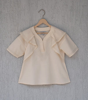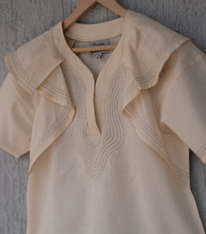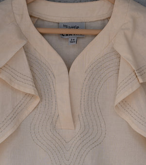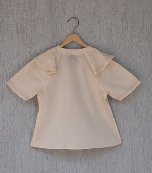 Discover the perfect blend of style and comfort for your little girl with our summer top featuring a shoulder flap design. Made from soft, breathable cotton fabric and adorned with intricate zari stitch detailing, this daywear essential is ideal for summer. Effortlessly stylish and designed with sleeves for added comfort, it's the perfect choice for every summer outing.