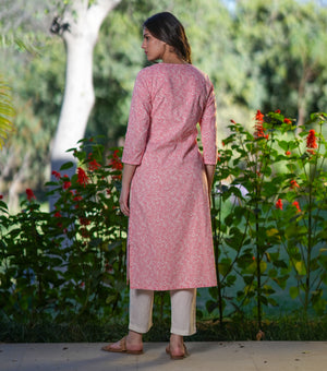 Pink Cotton Printed Kurta Set