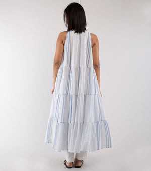 WHITE & BLUE STRIPED COTTON TIERED KURTA