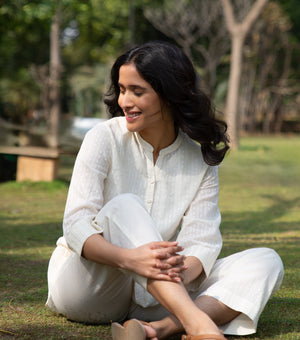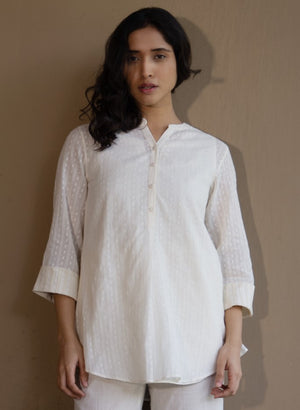 Step up your style game with our Cotton Jacquard Pintuck Tunic, where luxe meets laid-back fun! This tunic flaunts intricate jacquard patterns and playful pintuck detailing, making it perfect for those who love a touch of elegance without the fuss. The breathable cotton fabric keeps you cool while adding a dash of sophistication to your everyday look. Whether you're off to a lunch date or a casual day out, this tunic is your go-to for effortless chic.