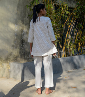 - Cotton pleated top with self woven design